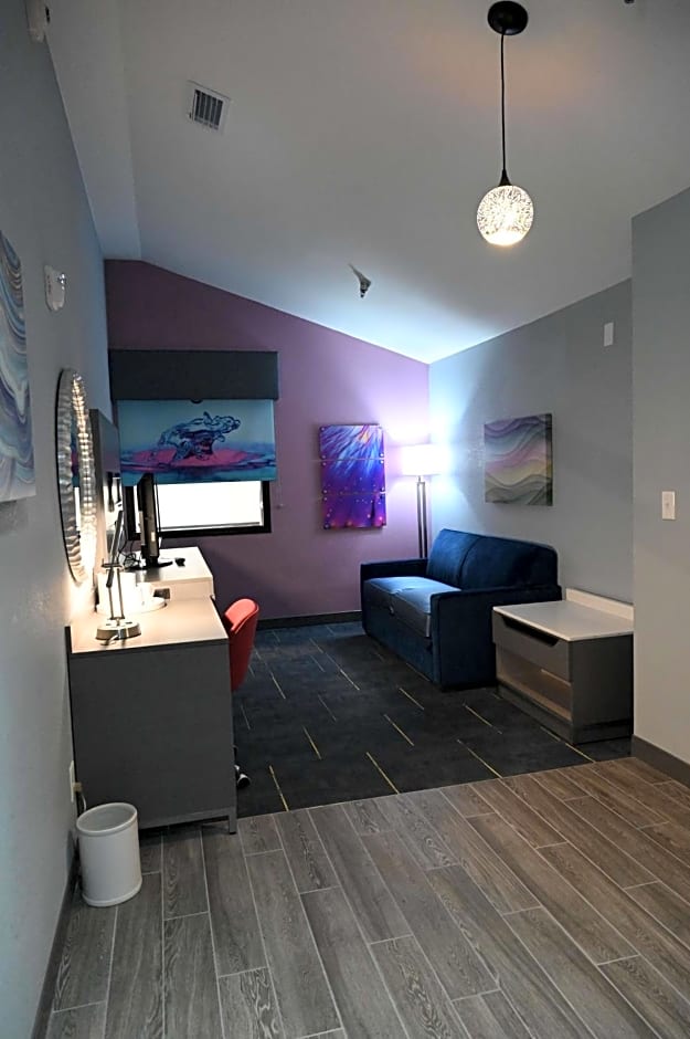 Any corresponding photo may not reflect the specific accessible room type or room feature. This mobility accessible, non-smoking room features one king-sized bed, and an accessible bath tub. The room features comfortable soft seating, microwave, refrigerator, a HDTV, and easy to operate alarm clock/radio. The free high-speed internet access will help you stay connected while on the road. If you prefer not to work at the desk, you can use the convenient lap desk instead. You'll also enjoy the convenience of having a coffeemaker with tea service and iron/ironing board in your room.